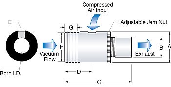 The material flow rate is easily controlled with a pressure regulator. No moving parts or electricity assures maintenance-free operation.
